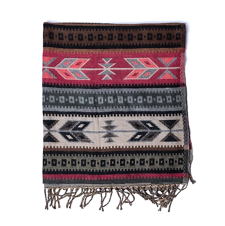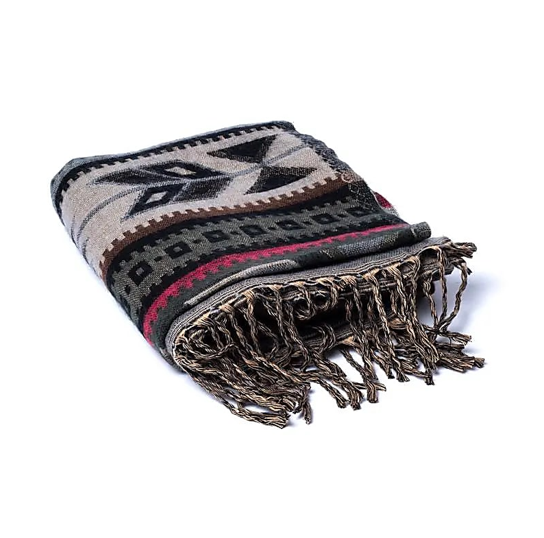 Chal de yoga de meditación con un elegante diseño de tejido bohemio en tonos tierra, proporciona una sensación de comodidad y aumenta la sensación de concentración porque la manta o chal te protege del entorno durante la meditación.