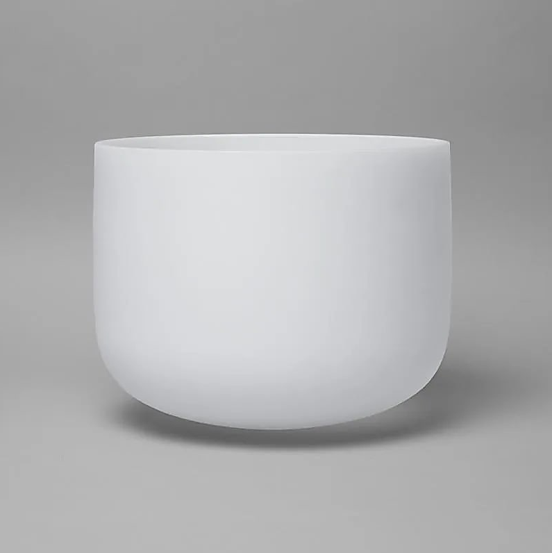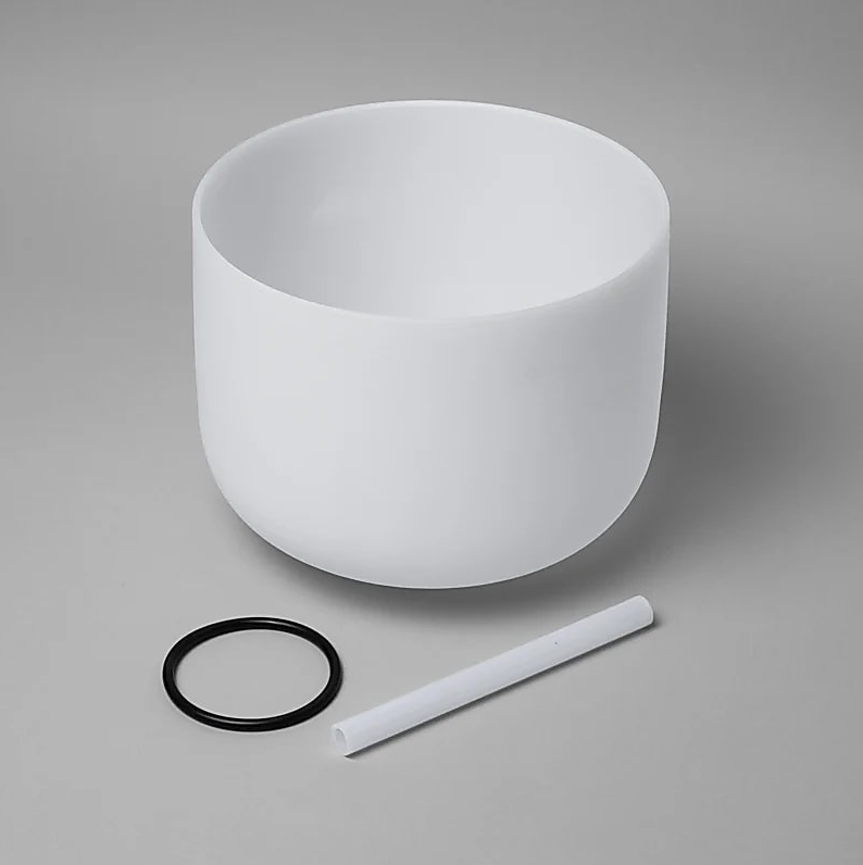 Estos cuencos de cristal, de reciente creación, destacan por su cuidada elaboración y por la pureza y potencia de sus sonidos. Están fabricados a partir de polvo de cuarzo puro, que se calienta a temperaturas muy elevadas hasta que las partículas se integran y dan forma al cuenco. Cada uno queda afinado de manera individual a una nota concreta. El tamaño influye directamente en el tono: los cuencos pequeños producen sonidos más agudos, mientras que los grandes generan tonos más graves. En general, los sonidos agudos tienden a estimular y limpiar, mientras que los graves favorecen la relajación y el enraizamiento. La percepción del sonido varía de una persona a otra, por lo que un mismo cuenco puede producir efectos distintos según el individuo. Por ello, se recomienda probar distintos tipos de mazos —de goma, cuero, tela o lana— para descubrir las distintas vibraciones que se pueden obtener.