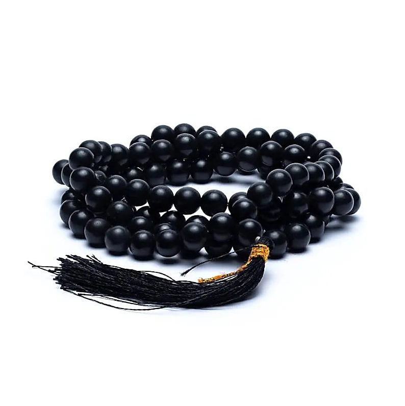 Mala para Yoga hecho de Ágata negra con 108 cuentas y es una poderosa piedra curativa