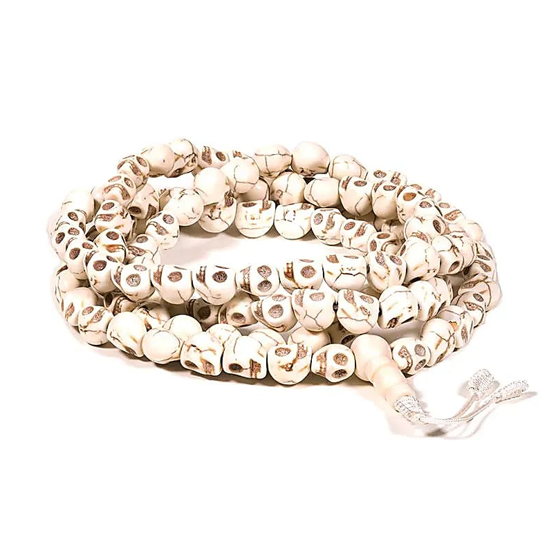 Mala para Yoga hecho de hueso 108 cuentas de calavera + cuenta Gurú fundamental para contar los mantras durante la meditación que simbolizan la transitoriedad
