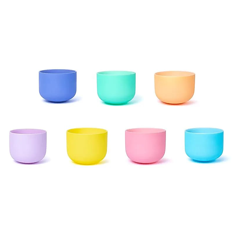 Conjunto de siete cuencos sonoros de cristal afinados en A4 a 432 Hz, vinculados a los siete chakras principales. Presentan un acabado en tonos suaves inspirados en los colores de los macarons, que les aporta un aspecto delicado y armonioso. Los cuencos son encajables y se transportan cómodamente gracias a las dos bolsas acolchadas incluidas.